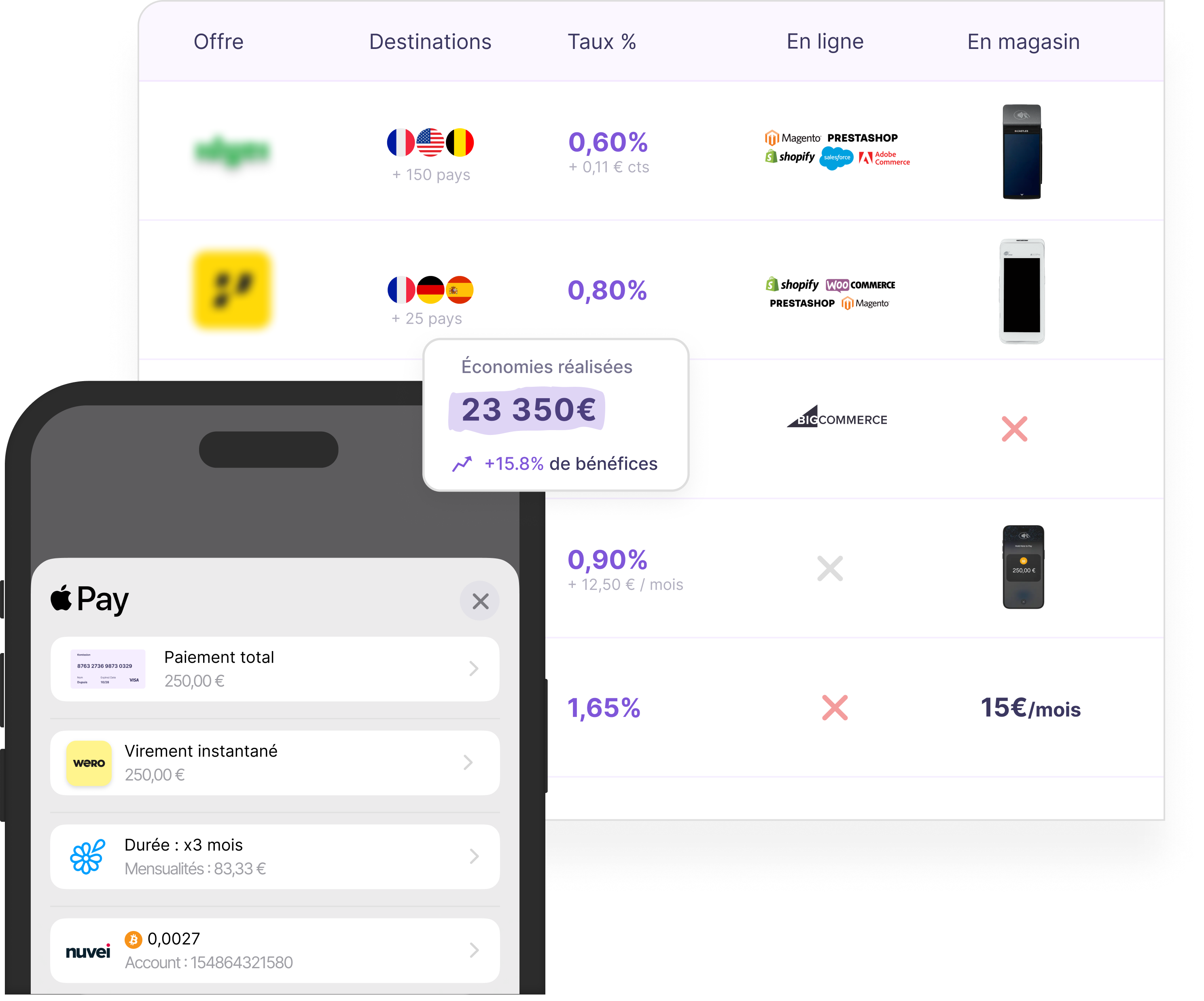 Notre rôle : vous aider à trouver rapidement la meilleure offre pour encaisser les paiements, que ce soit via un TPE, un SoftPOS, une solution e-commerce, un lien de paiement ou une option de paiement fractionné (BNPL).